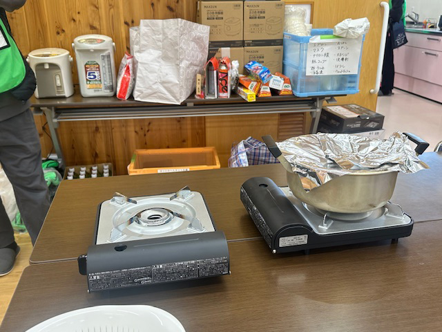 令和7年3月7日、今年も災害プロジェクトチーム・相談チーム合同で「炊き出し訓練&出張相談会」を開催しました。今回のメニューはアルファ米とシチューや中華丼などの備蓄食を使用し70食分を用意しました。