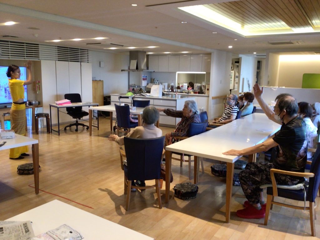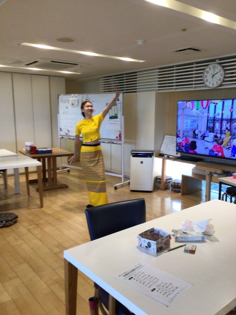 ミヤンマー出身の職員によるミヤァンマーダンスです🎶 皆さま一緒に楽しく踊っておられます(^^♪