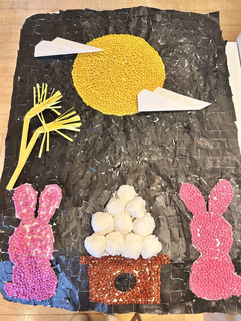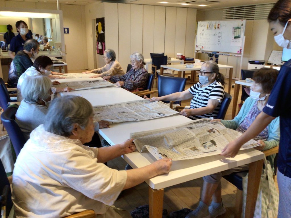 この日は新聞紙を互いに引っ張ってどのチームが早くやぶれるか競うゲームです。手に汗をかきながら頑張っておられます💦