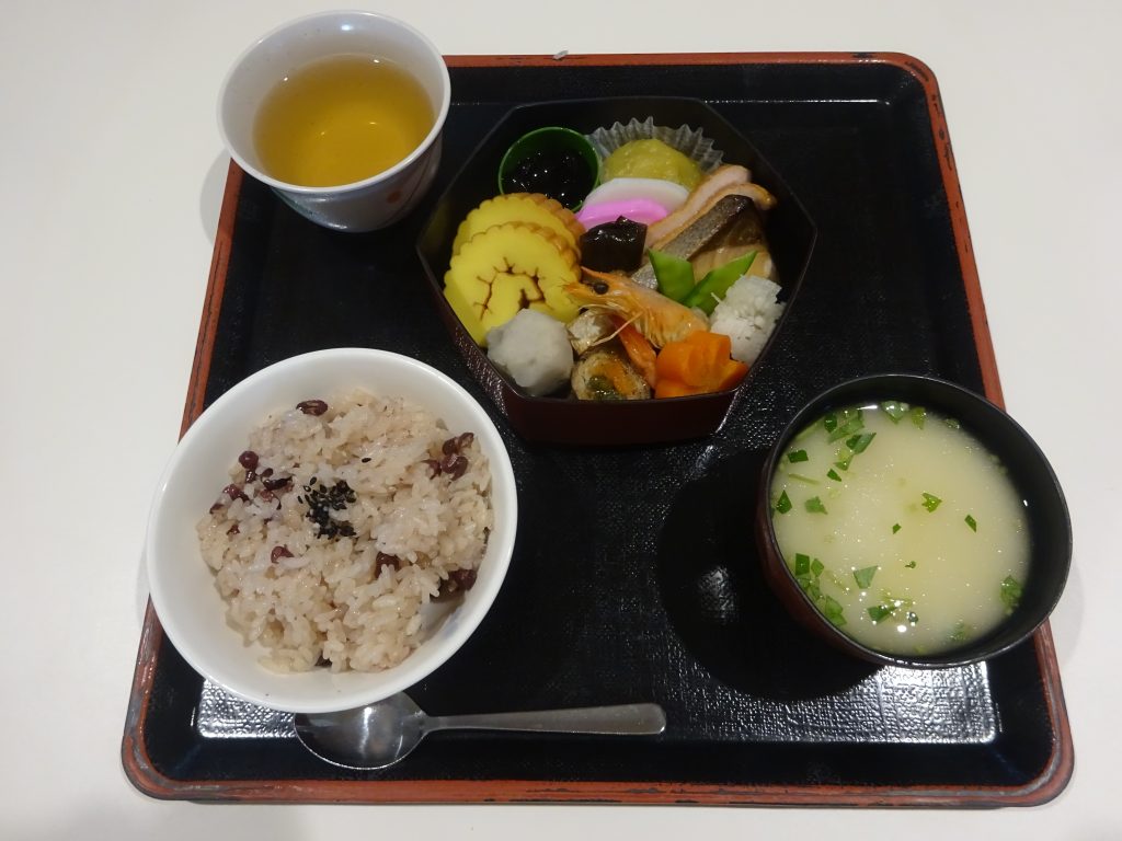 ・赤飯 ・祝雑煮(白味噌仕立て) ・炊き合わせ ・鰤の照り焼き ・紅白かまぼこ ・祝黒豆 ・栗きんとん ・伊達巻 ・にしん入り昆布巻 ・合鴨ロース燻製 ・菊かぶら