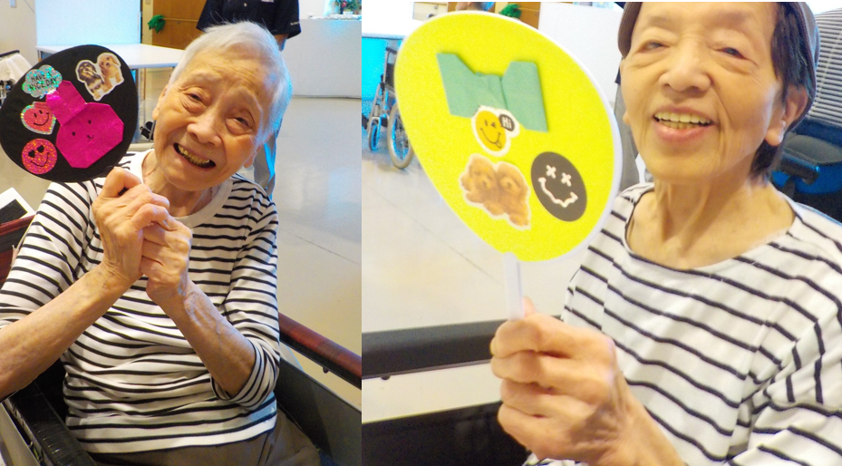 8月度のお楽しみ会では、暑い夏に使える手作りうちわの製作を行いました💛
