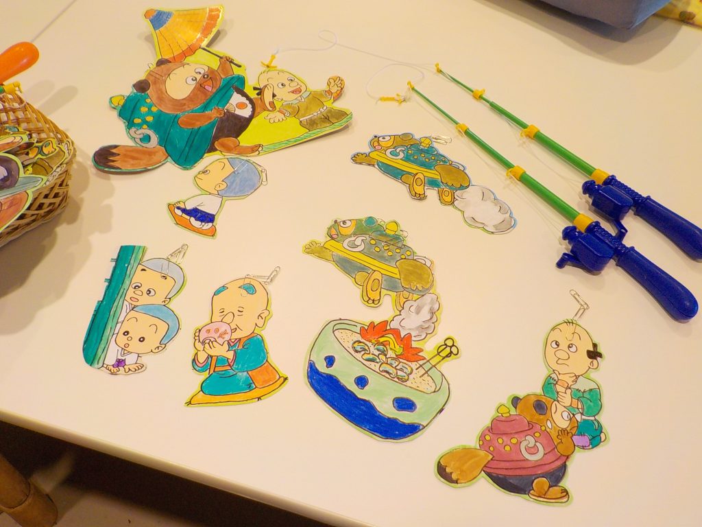 工作上手な職員のSさんの提案で、先月投稿したパズルを何種類かパーツごとに切り、魚釣りの素材にしました👍