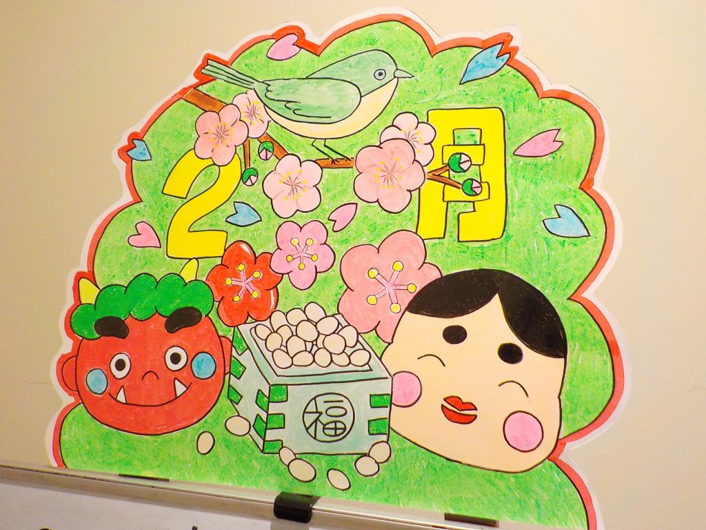 毎月恒例になってきました季節を感じられる献立ボードですが、お正月から節分に変わりました!!!