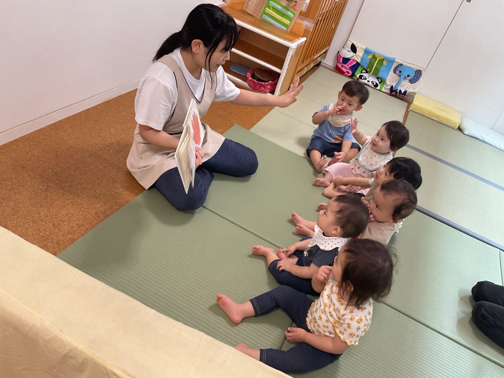 子どもたちの笑顔を見ながら読み聞かせをする中で子どもたちの心に残る時間になっていることを感じました。今後も興味に合わせた絵本を取り入れて読み聞かせをしていこうと思います。