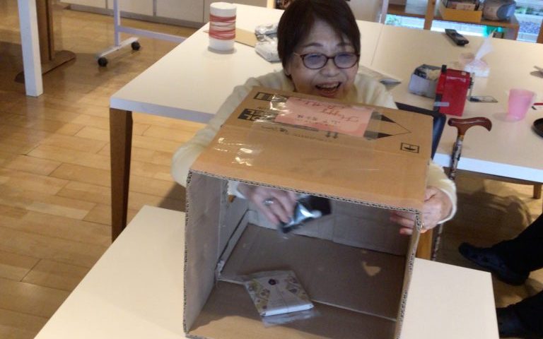 皆さまで誕生日の歌を歌い、お祝い致しました👏 それから誕生日プレゼントを箱の中身はなんだろう~?で、箱の中を探りながら選んで頂いております(>_<) 気に入って頂き何よりです🎊