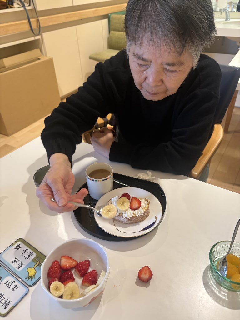 いちごやミカン、バナナをトッピングして「美味しそう!」「綺麗に出来たから食べるのがもったいないわ~」なんて声が聞こえてきました🍰 とても大好評で喜んで頂きました👏