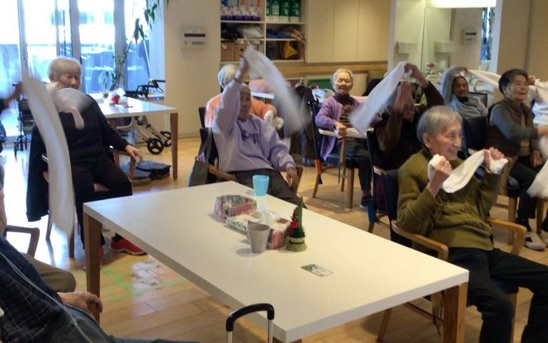 この日はタオルを使って身体を温める体操に参加して頂きました。