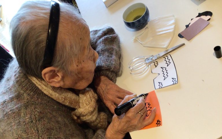 別の日には転がってきたボールを色分けするゲームです。 皆さまとてもお上手なので、職員が「○○さん、何歳ですか?」「今日は何日ですか?」なんて話かけながら、惑わされながらも頑張って色分けされていました👏