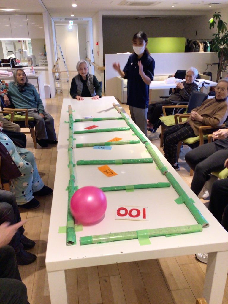 この日は棒でます目を作り、遠くにボールを投げて点を競うゲームに挑戦して頂きました👏
