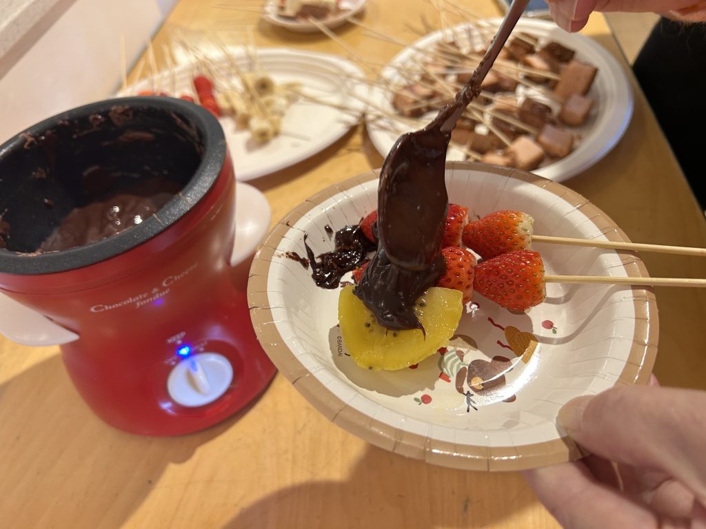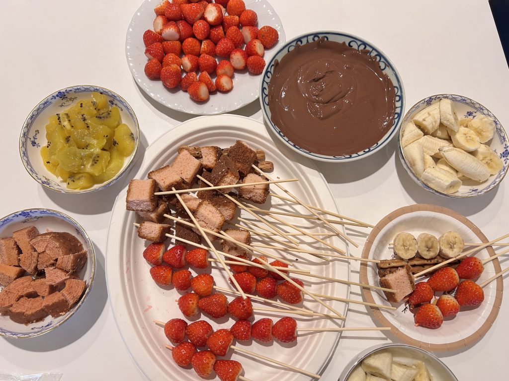 セルフサービスでチョコをたっぷり付けたり、かけたり皆さま思い思いにバレンタインを楽しんで頂きました。