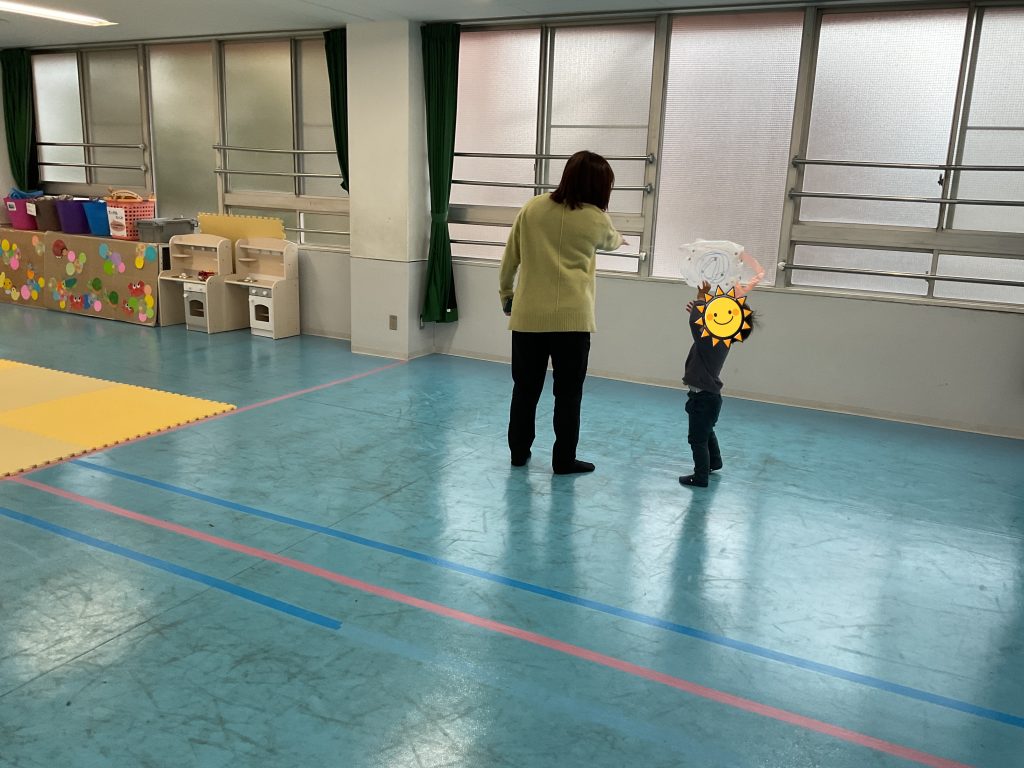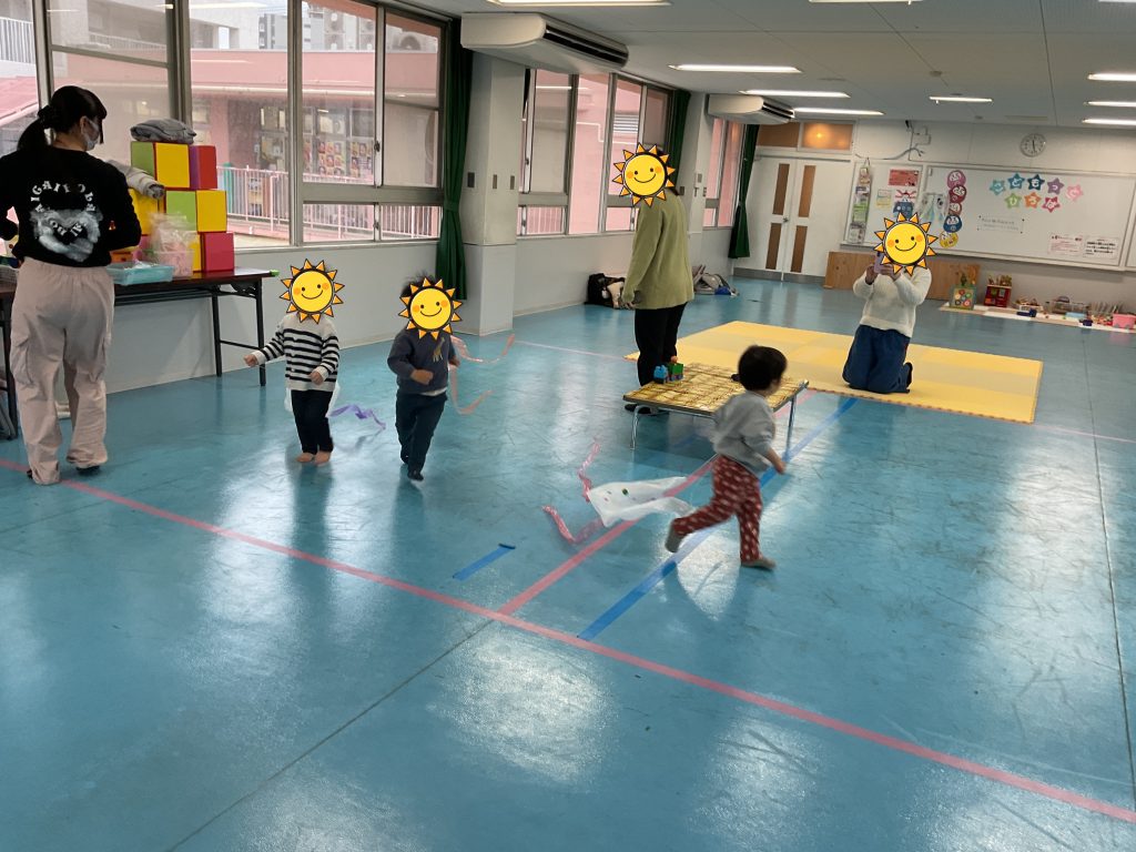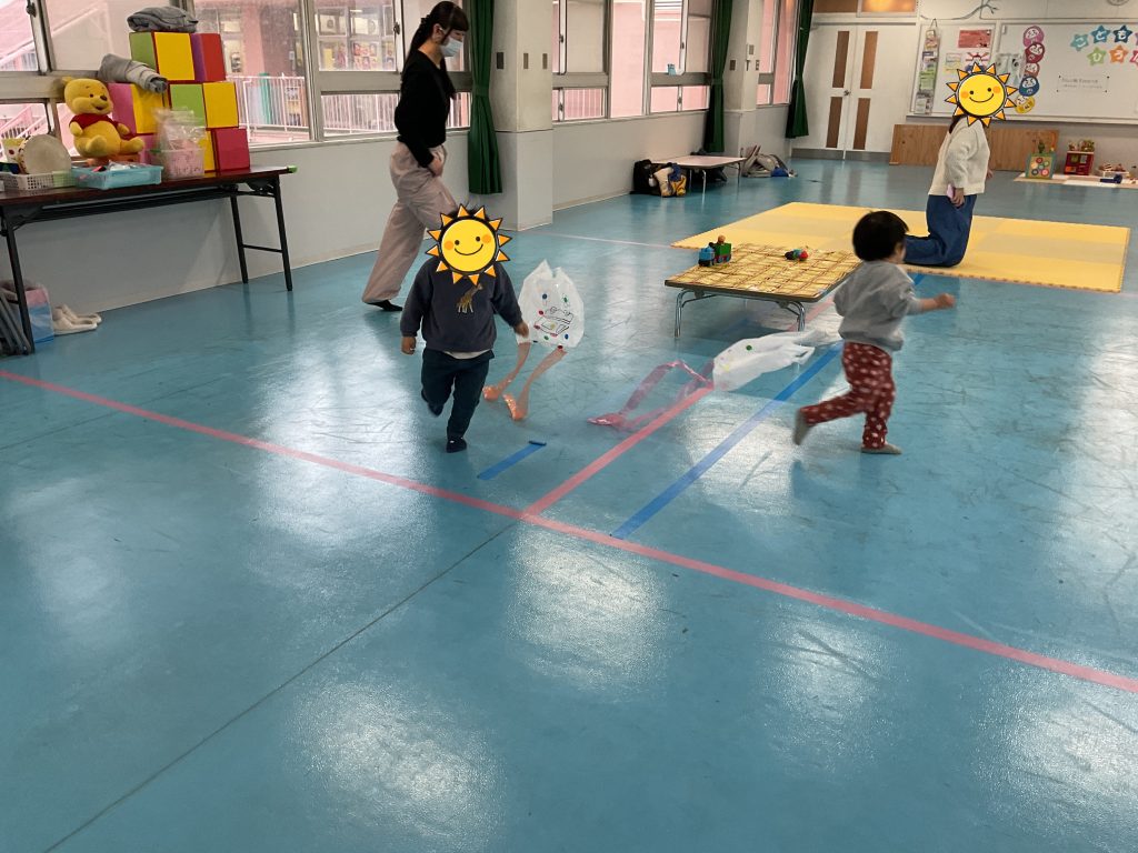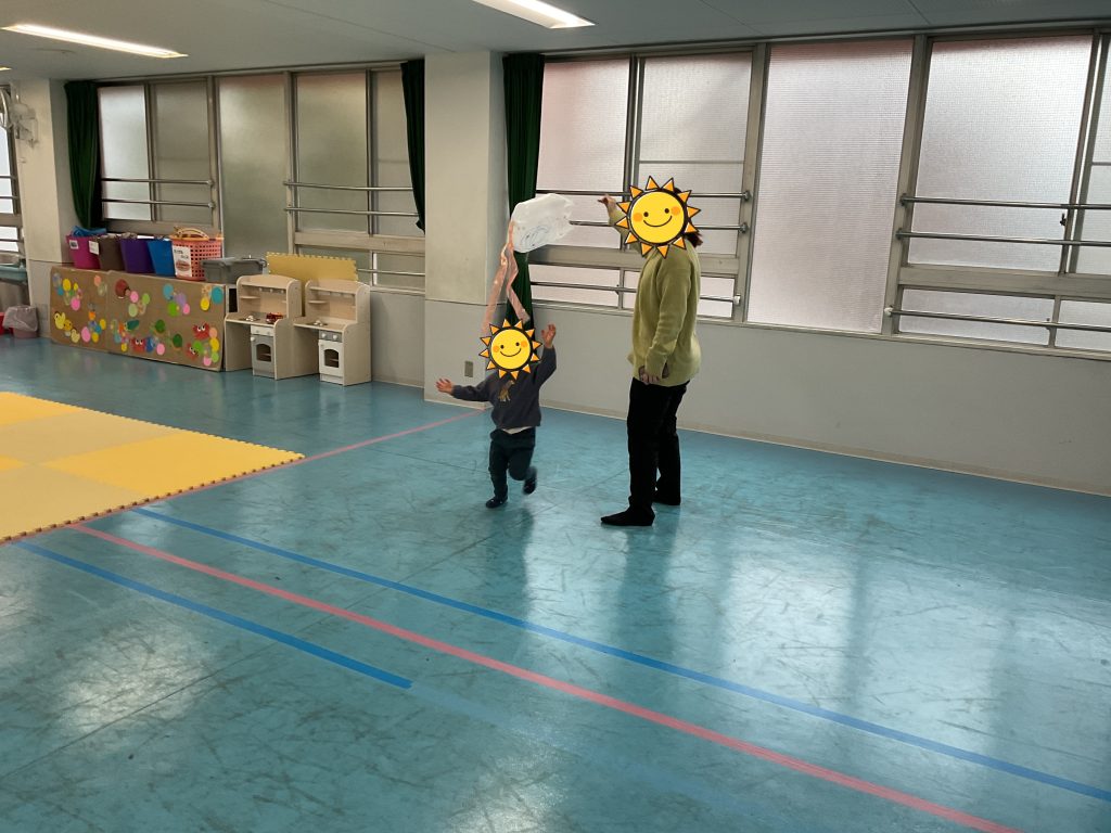 作った後は室内ではありますが、実際に凧あげもしました🌞走ると凧がふわふわしているのを見ながら、楽しそうに走り回っていました(*^^*)