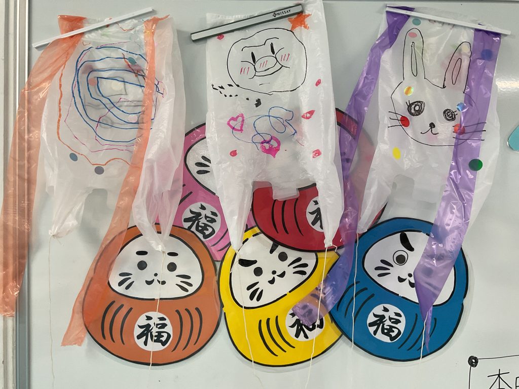 まずはシールやマジックを使って、オリジナルの凧を作りました!(^^)!