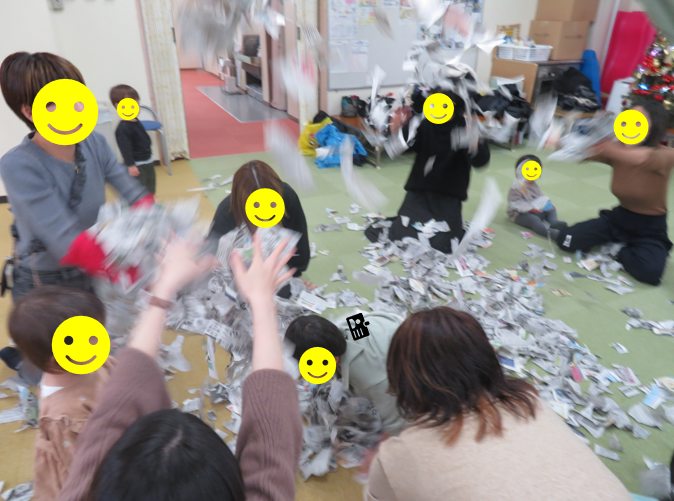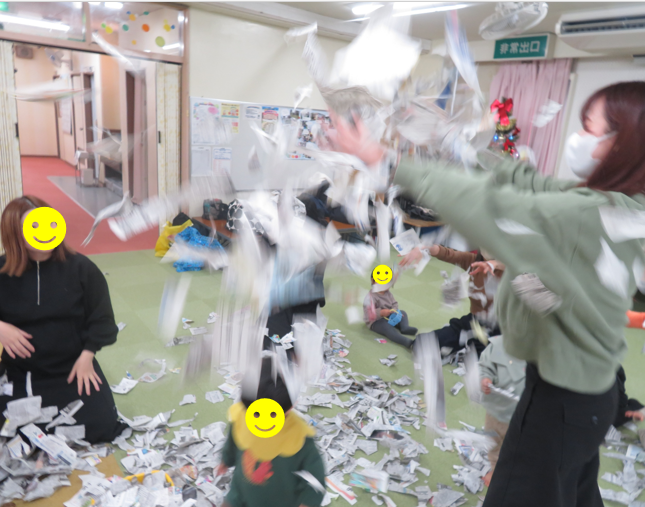 一番盛り上がったのは写真にある上から新聞紙をなげて遊んだところでした🤣