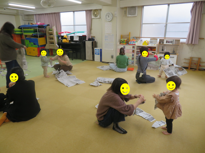 11月25日なかよしひろばでは、新聞紙あそびをしました📰