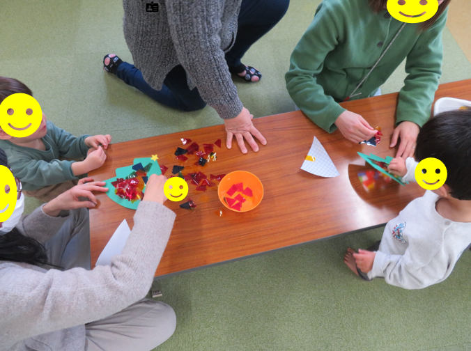 みんなお母さんと一緒にツリーにいろんな色を装飾してきれいなクリスマスツリーができていました😊