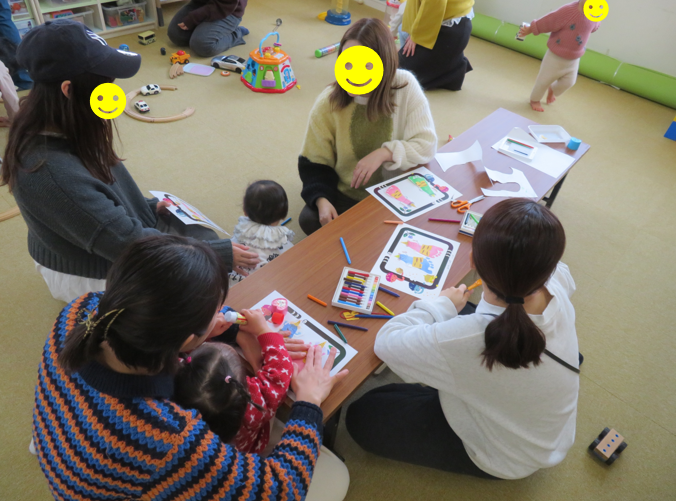 1月27日、30日のなかよしひろばの1歳児タイム・赤ちゃんタイムでは足形をとって鬼を作りました👹