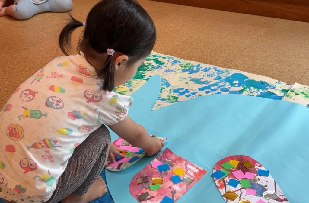 絵本を見て、海や海に住む生き物のイメージを膨らませながら活動を楽しみましたよ🐟