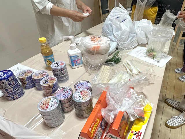 缶詰や好みの野菜を使用し、火を使わない調理を実践していただきました。手軽な材料で簡単に調理でき、美味しく召し上がっていただきました。