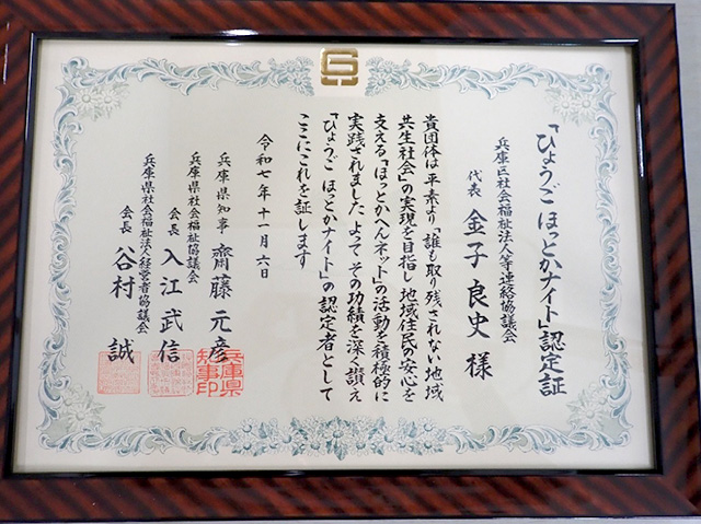 『ほっとかへんネット兵庫』が「ひょうご ほっとかナイト 第1号」として認定されました